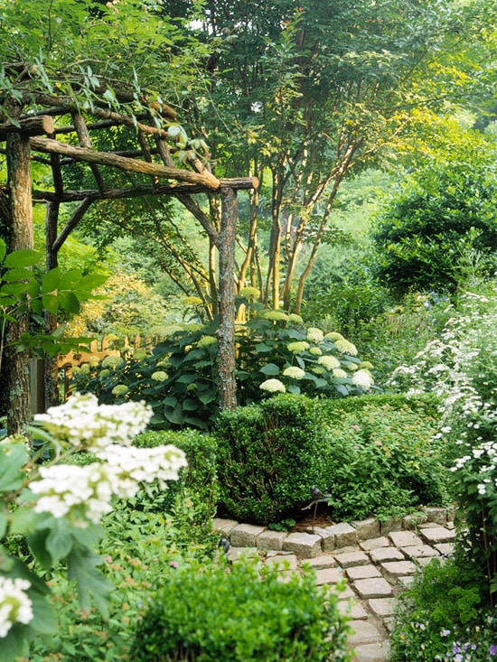 - Place white pebbles against dark mulch for a striking effect.