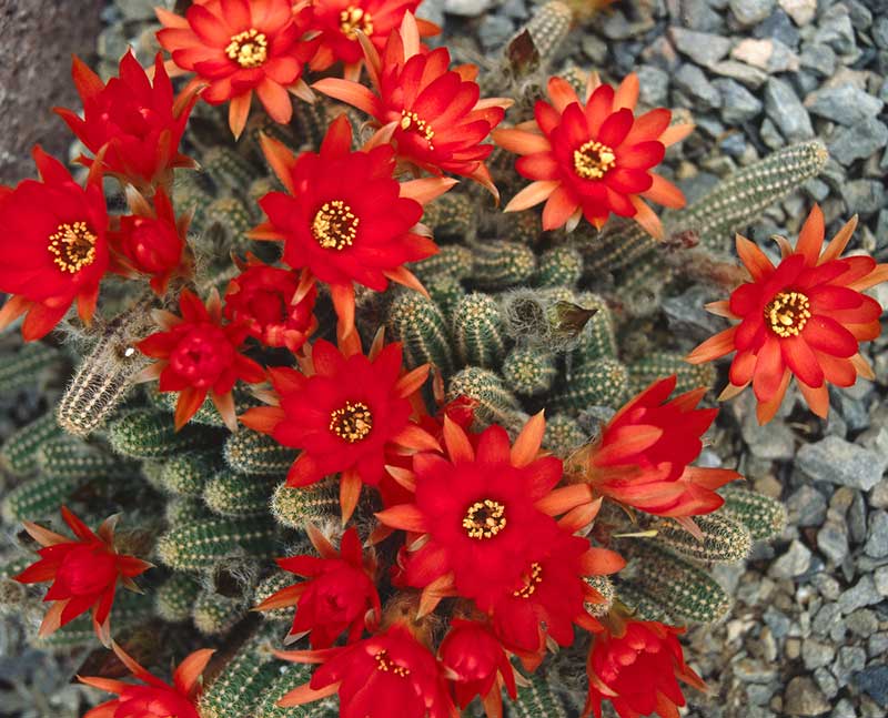 The Peanut Cactus is a low-growing succulent known for its bright orange-red flowers that bloom in spring and early summer. Its name comes from its finger-like stems, which resemble unshelled peanuts.