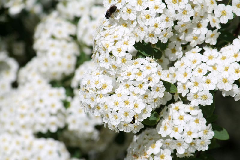 Commonly referred to as Queen-of-the-meadow, this perennial bears large clusters of small, frothy white blooms with a sweet, almond-like scent.