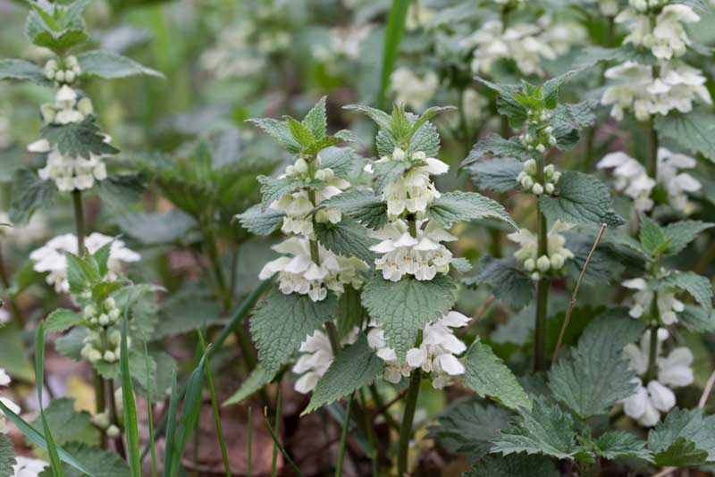 Commonly known as deadnettle, lamium is a fast-growing ground cover that offers beautiful white flowers along with silvery, variegated foliage.