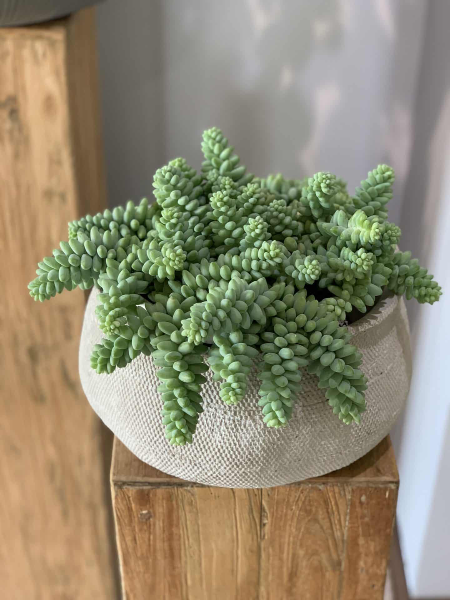 Native to Mexico and Honduras, Burro’s Tail is a trailing succulent with beautiful, plump leaves that resemble a braided tail or rope. This cascading plant looks stunning in hanging planters and is perfect for bright indoor spaces.