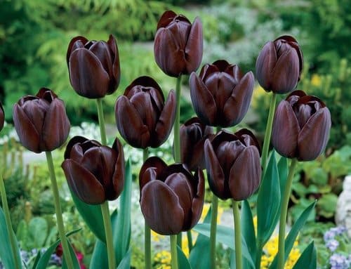 These exotic, deep-purple tulips are almost black in color and offer a rich, dramatic look in spring gardens.