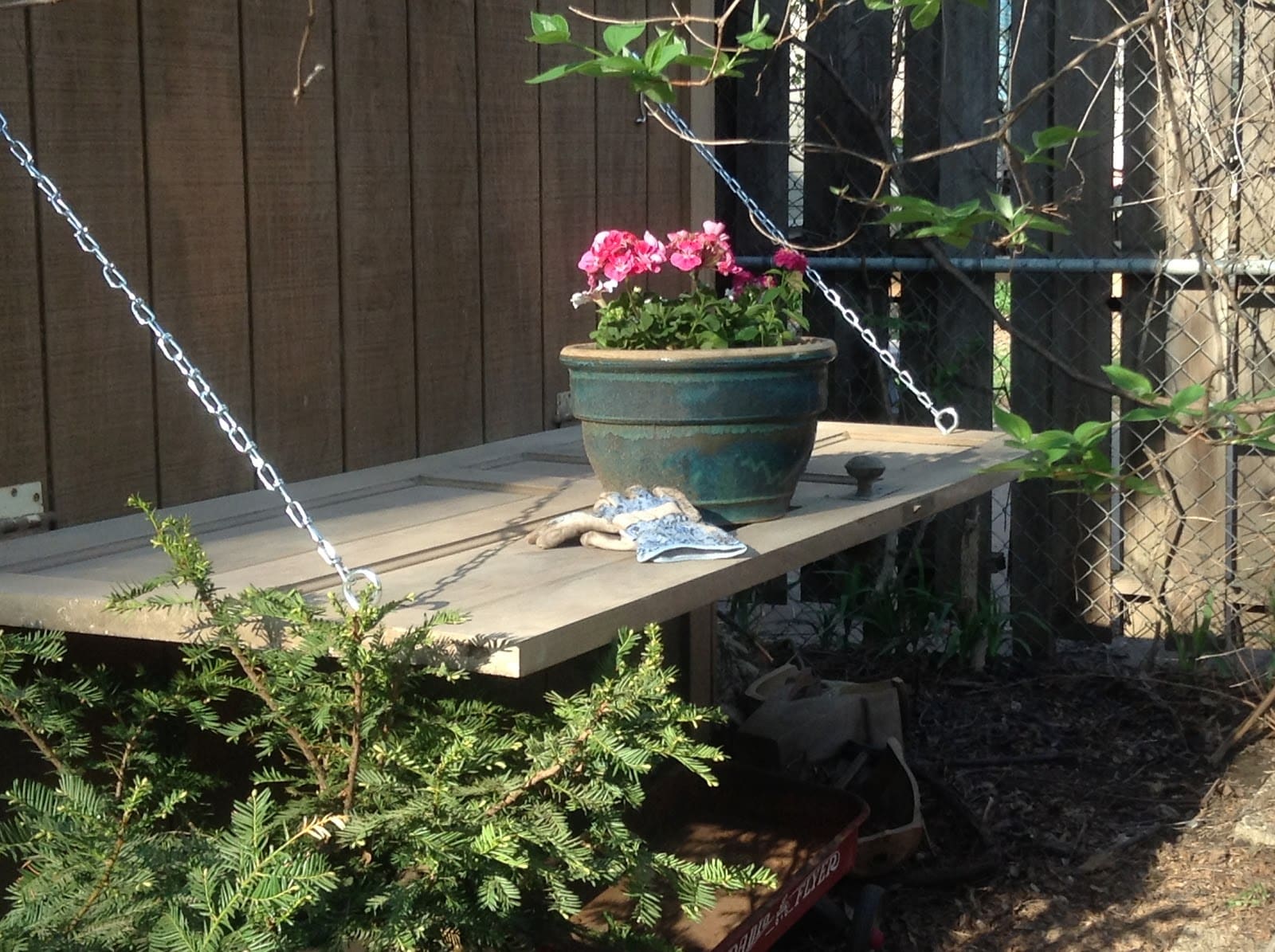 7. Reclaimed Door Potting Bench ๐ช