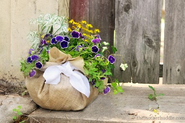 Turn an old laundry basket into a charming planter by lining it with burlap. The breathable fabric helps with drainage while keeping soil contained.