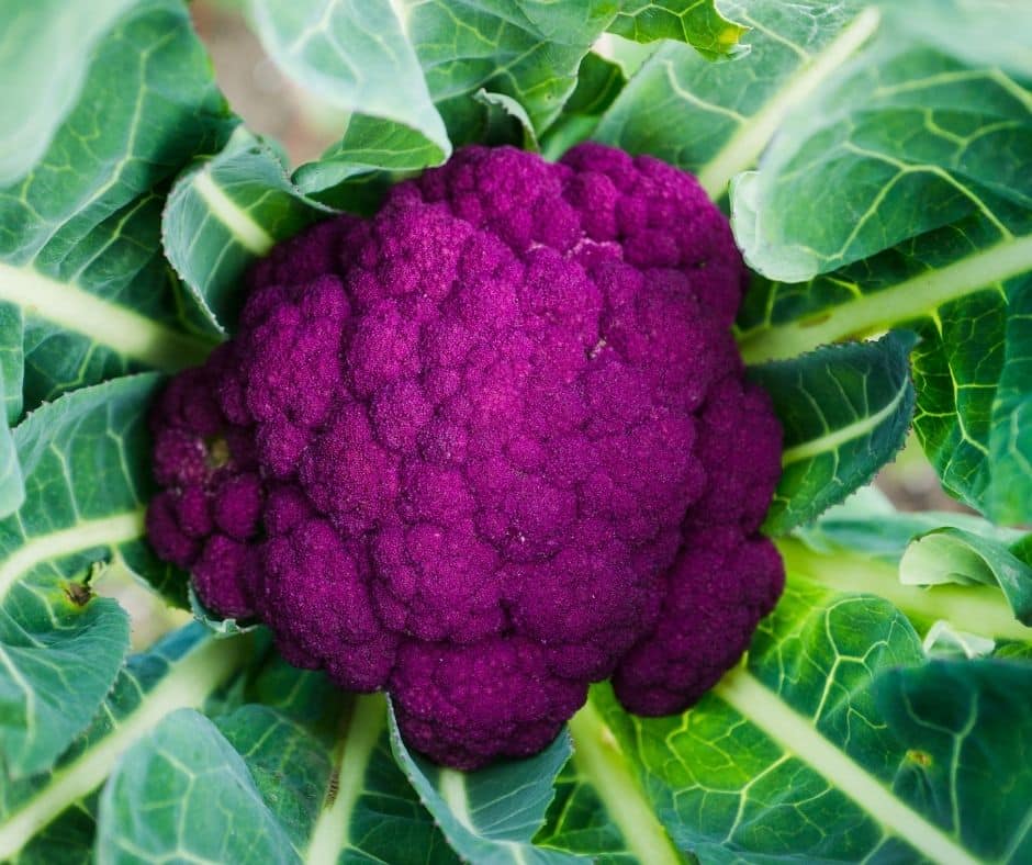 Cauliflower doesn’t have to be white. Purple cauliflower brings a bold splash of color to vegetable gardens and dishes alike.