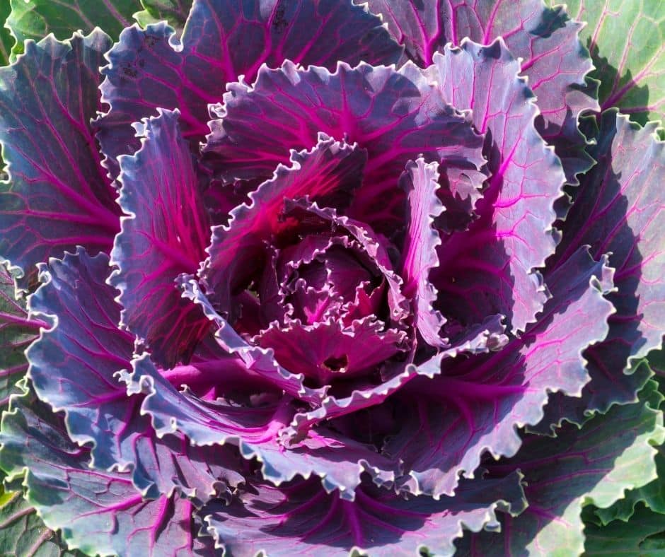 A staple in many gardens, purple cabbage is not only delicious but incredibly colorful.
