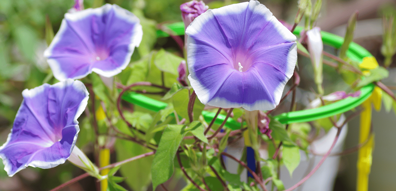 Morning Glories are beautiful vines with bright blue flowers. They grow well on fences and trellises, making them perfect for homes with neat outdoor spaces!