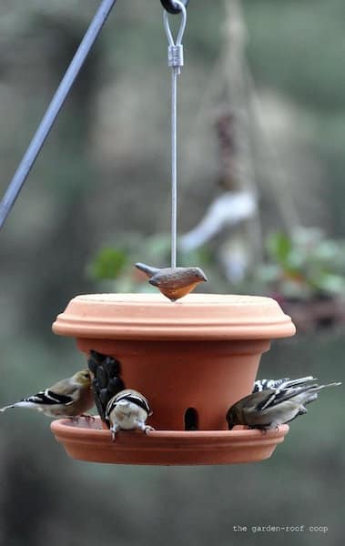 Turn a terra cotta saucer and a small pot into a hanging or freestanding bird feeder. Fill it with birdseed, and watch your garden attract beautiful birds year-round.