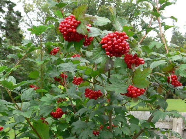 Highbush cranberry is a cold-hardy shrub that produces vibrant red berries, great for making sauces and jams.