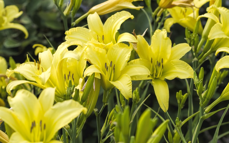 Daylilies (Hemerocallis) are hardy, drought-tolerant perennials that produce large, colorful flowers in shades of yellow, orange, pink, and red.