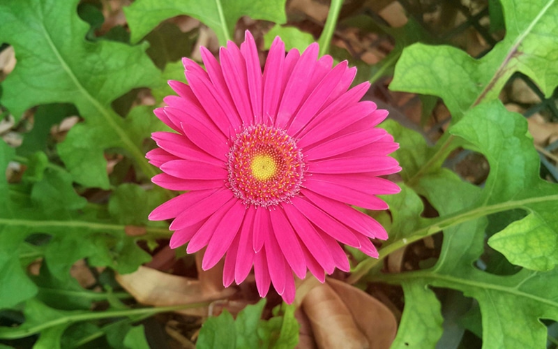 Gerbera Daisies are cheerful, low-water flowers that bloom in bright shades of red, pink, yellow, and orange.