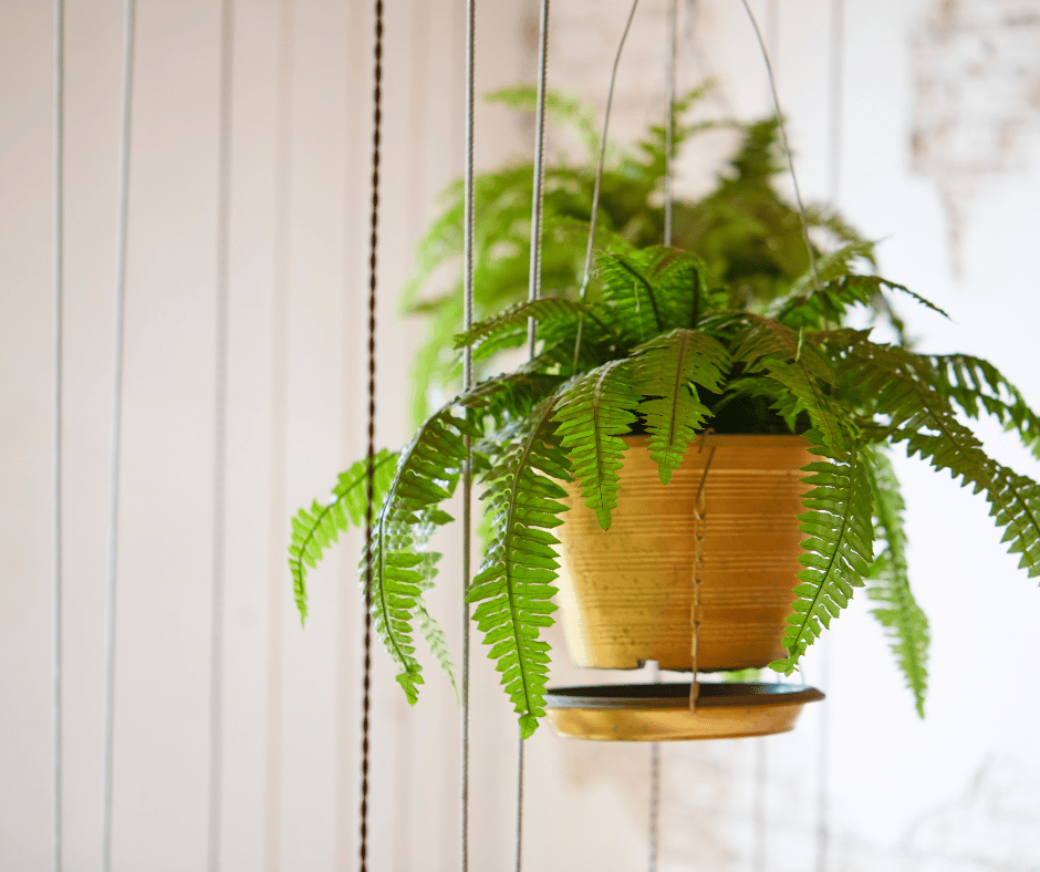 The Boston fern brings lush, feathery texture with its arching fronds, making it one of the most popular ferns for hanging baskets.