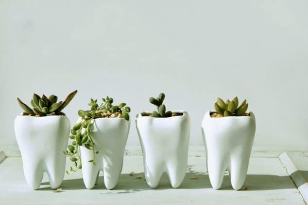 For a quirky and modern twist, try crafting tooth-shaped planters! These look great on desks or bathroom counters and are a fun way to display small plants like aloe vera or cacti.