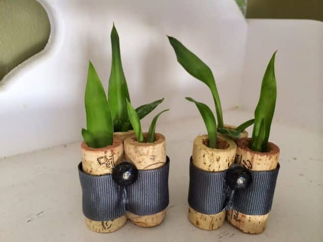 Double the fun with two wine cork planters glued together! Add mini air plants or microgreens for a cute mini garden effect. These also make great conversation starters.