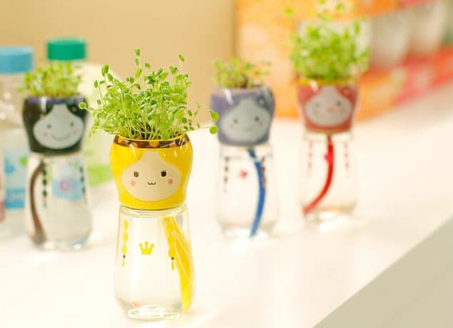 Repurpose old baby bottles into adorable planters by cutting the bottom half and filling them with soil. They make for a unique plant holder and are great for nurseries or children’s rooms.