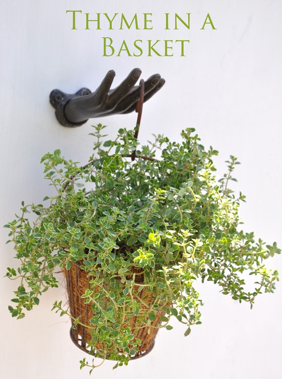 Thyme is a hardy herb that thrives in hanging baskets. Alongside other Mediterranean herbs like rosemary, marjoram, oregano, and basil, thyme enhances the aroma and taste of home-cooked dishes.