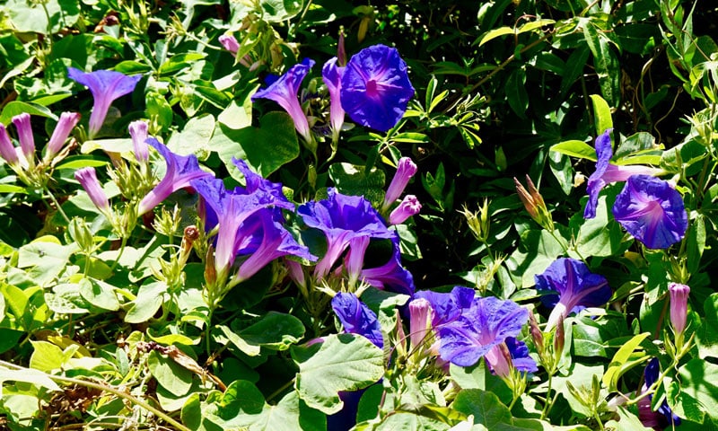A cheerful and fast-growing annual vine, morning glory features brilliant blue, purple, or pink trumpet-shaped blooms that open each morning.