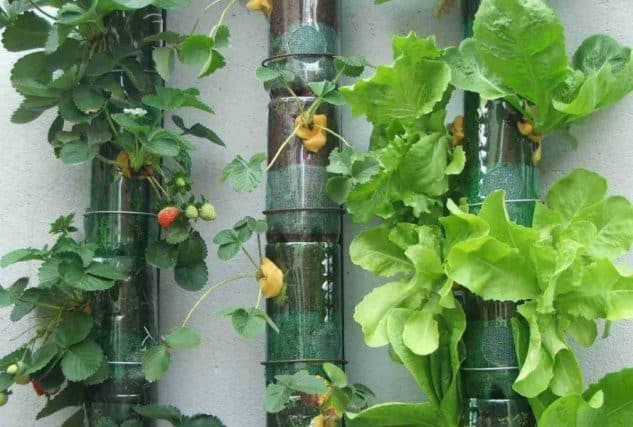 Grow your own fresh greens by hanging lettuce, spinach, and kale in vertical planters.