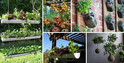 Combine hanging vegetable plants with colorful flowers to create a stunning vertical garden. The mix of greens and blooms adds beauty and functionality.