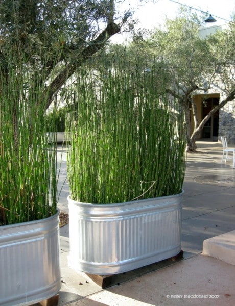 Looking for a quick and stylish privacy solution? Galvanized tubs filled with tall, lush plants offer an instant, natural screen.