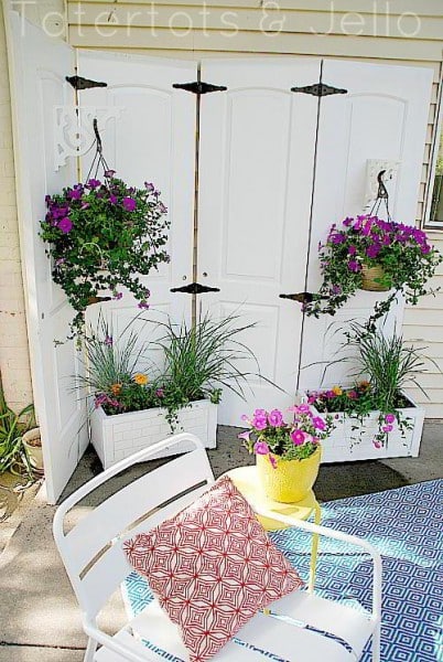 Give old closet doors a second life by repurposing them into a decorative privacy screen.