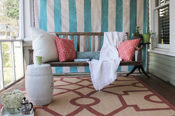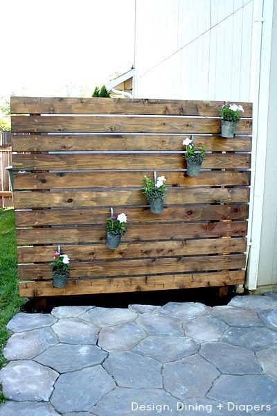 If you want a budget-friendly privacy screen, a painted drop cloth is an easy and customizable option.