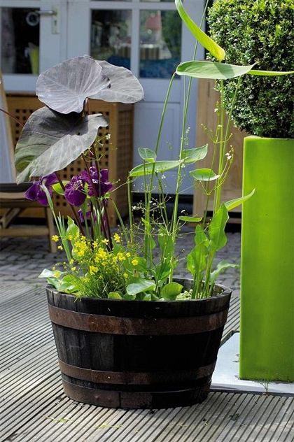 Choose low-maintenance, container-friendly water plants: