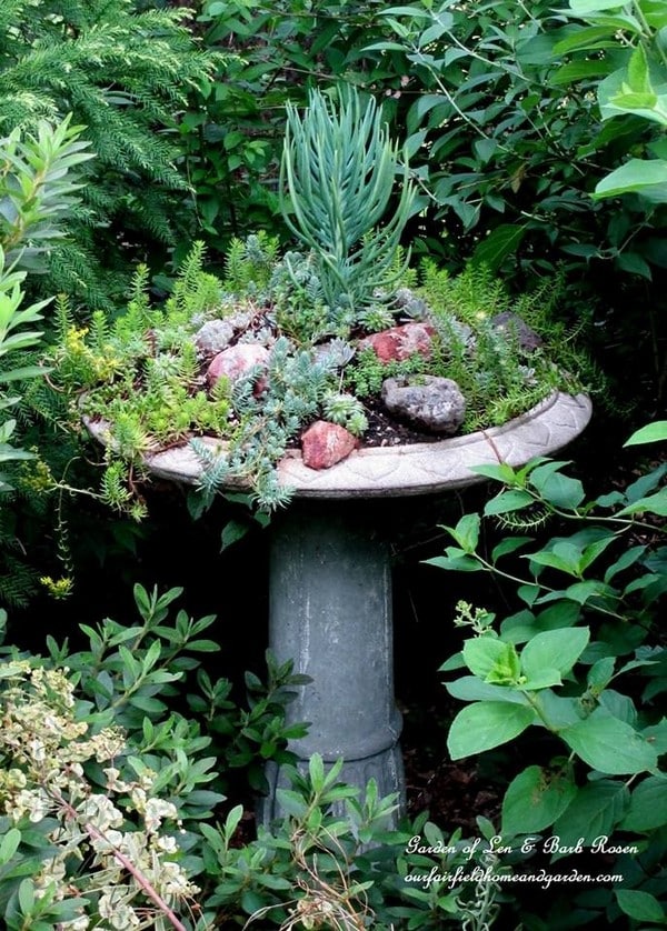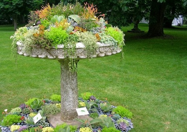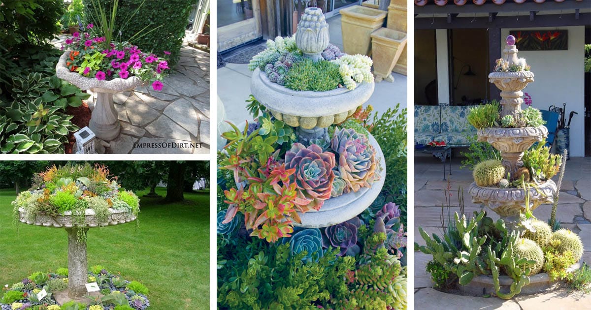 14 Great Ways To Turn Broken Fountains And Bird Baths Into Amazing Planters