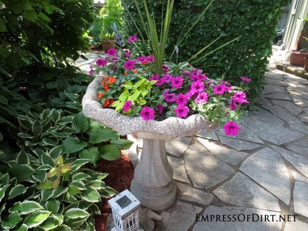 If you have a broken fountain or unused birdbath collecting dust in your yard, don’t be too quick to toss it out.