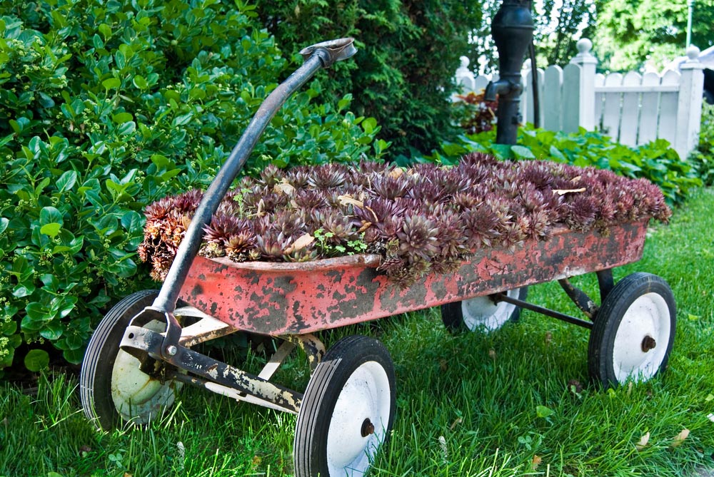 Repurpose an old children’s red wagon into a portable succulent planter.