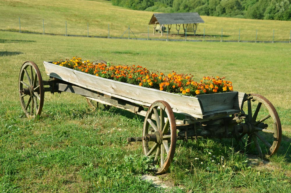 4. Long Wagon Filled with Marigolds – A Vibrant Country Display