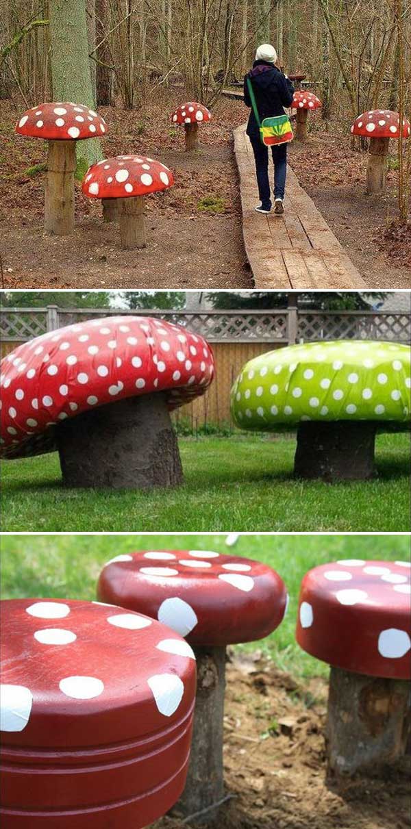 Turn small logs into charming wooden toadstools to decorate garden beds or shady corners.