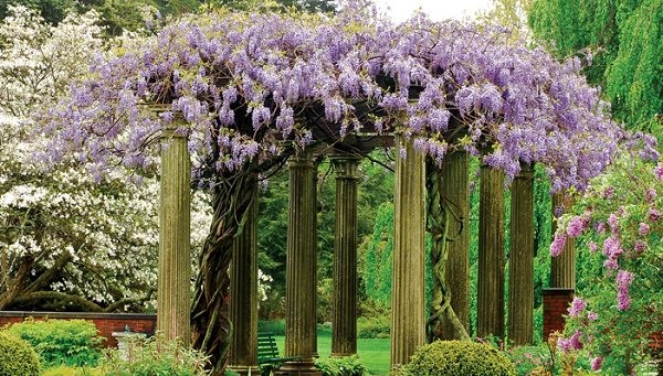 Needs strong support—wisteria is heavy and long-living.