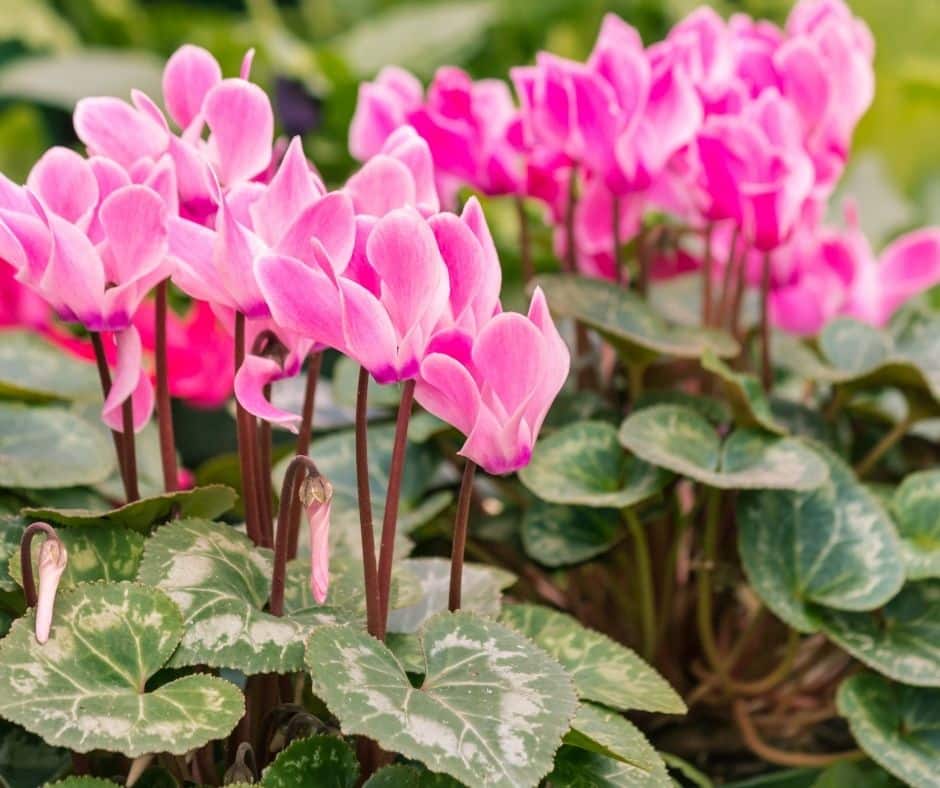 Cyclamen is a true winter star, prized for its upswept, butterfly-like blooms in shades of pink, white, and red.