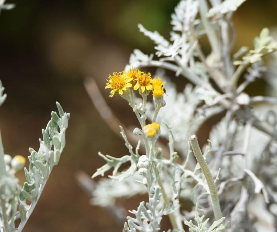 Dusty Miller is often grown for its striking, silver-gray foliage rather than its blooms, but its tiny yellow flowers can add subtle beauty in late winter.