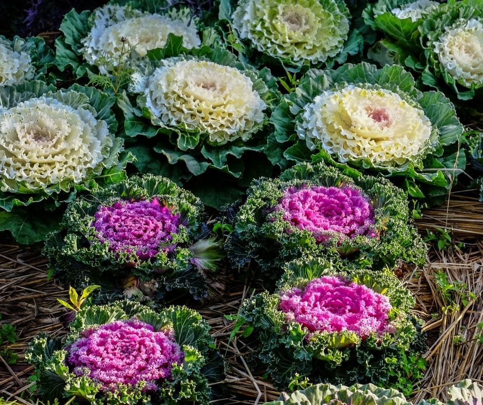 Ornamental Kale is a striking, hardy addition to any winter garden. Its colorful rosettes of ruffled leaves come in hues of pink, purple, green, and white, providing bold color even when snow falls.