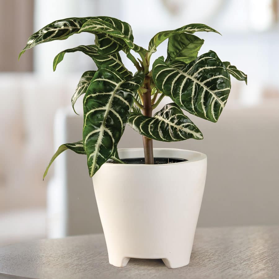 Featuring large, round leaves with silver-green zebra stripes, this plant is a statement piece in any room.