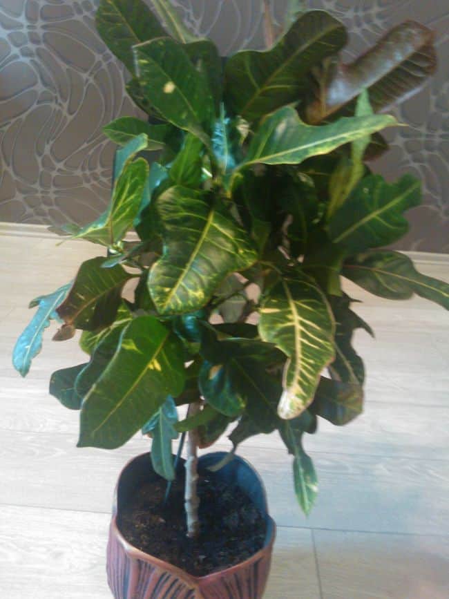 Crotons like warm, humid environments and regular watering, though the soil should be allowed to dry slightly between waterings.
