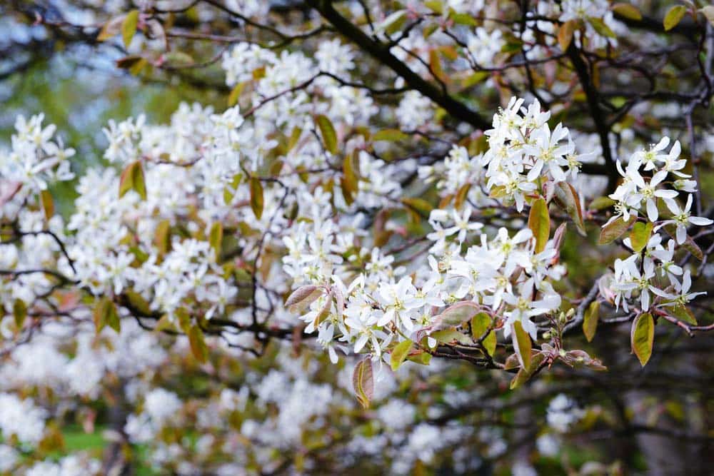 Serviceberry trees produce sweet, edible berries that birds and humans alike enjoy.