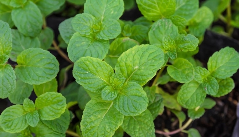 Grow peppermint in containers to control its vigorous spread. It prefers partial sun and moist soil.