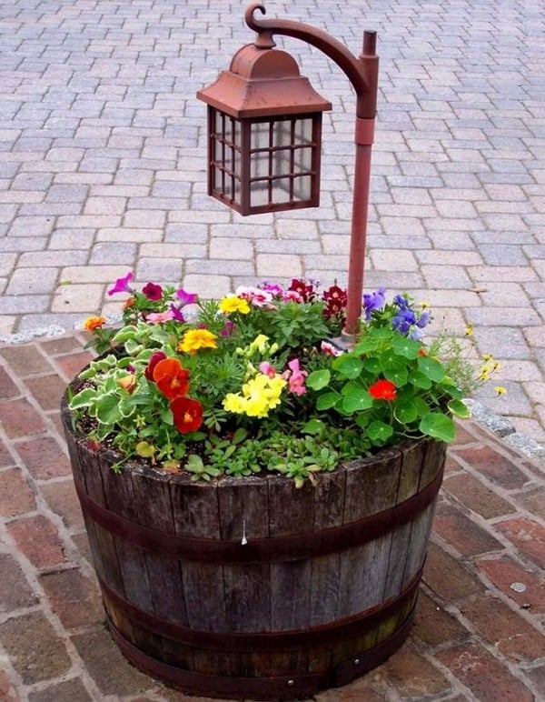 Transform an old barrel into a sturdy, long-lasting planter that can house anything from small succulents to lush, flowering plants.