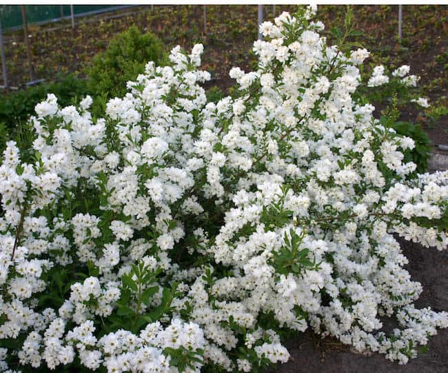 This flowering shrub can grow up to a height of about 10 feet. Considered as one of the best flowering shrubs for full sun, the Pearlbush can survive drought and arid conditions.