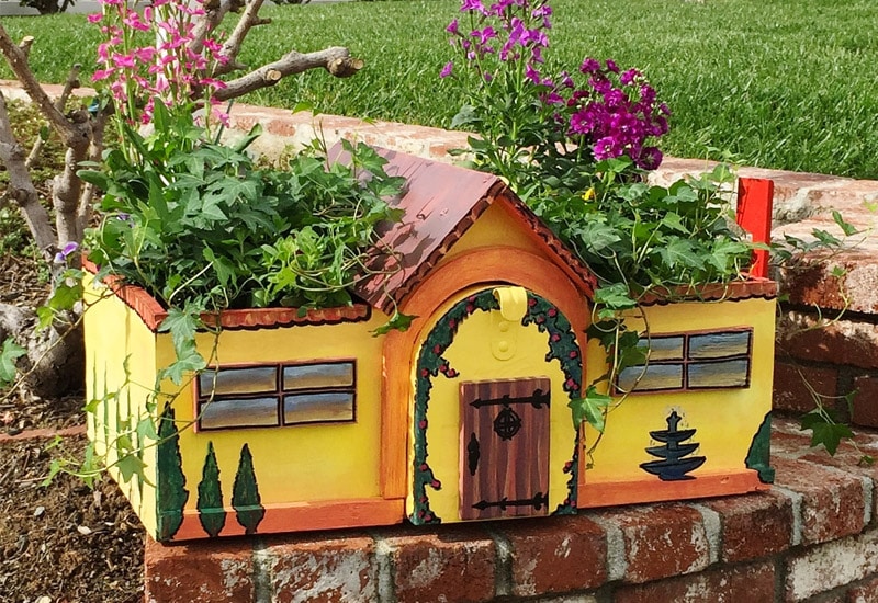 Why have a plain mailbox when you can turn it into a charming mini house planter? This adorable design features a house-shaped box with flower containers on each side, making it a beautiful statement piece.