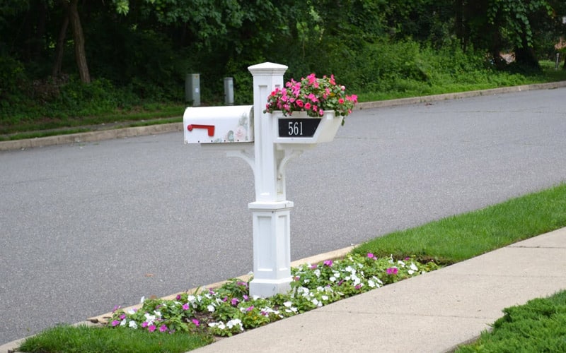 Upgrade your curb appeal by attaching a planter box beneath your mailbox with your house number displayed on the post. This makes it both stylish and functional!
