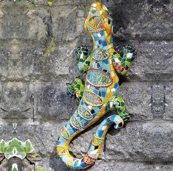 Create a stunning mosaic lizard using broken ceramic tiles or stained glass. Attach it to a garden wall, fence, or pathway for a bold and artistic statement piece.