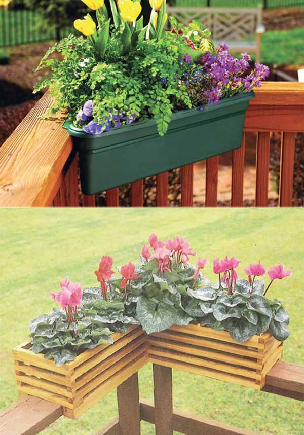 Whether you hang them outside or inside the railing, these planters turn unused edges into blooming borders and hanging herb gardens.