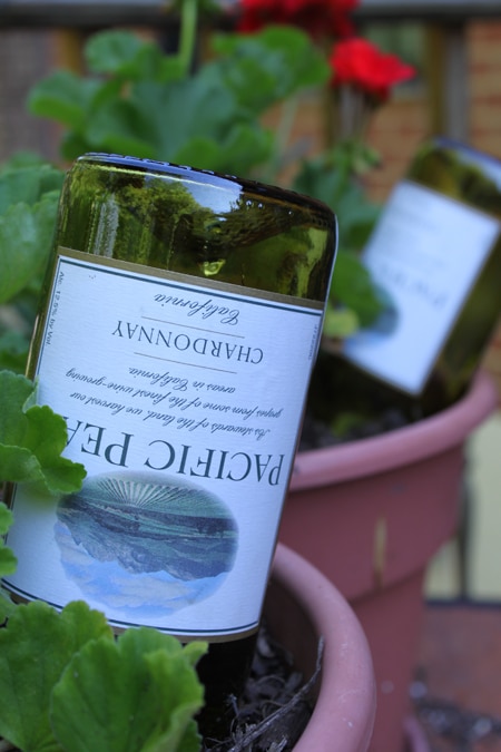 6. Reuse Empty Wine Bottles as a Gradual Watering System 🍷