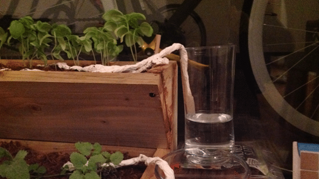 Keep your plants hydrated while you’re away by using an empty wine bottle as a slow-drip irrigation system!