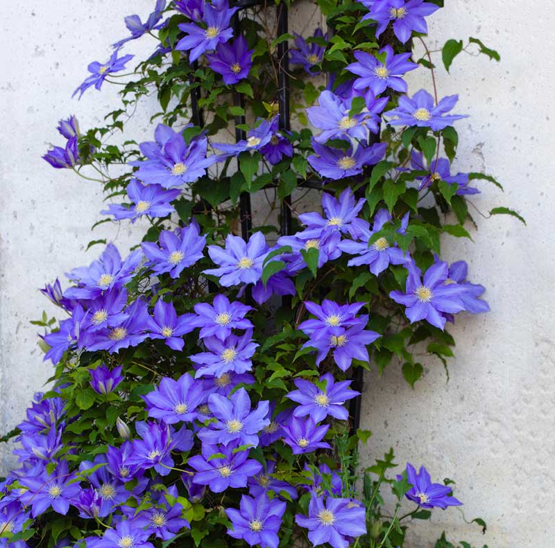 Clematis is a show-stopping climbing perennial with large, star-like flowers in a rainbow of colors. It’s ideal for growing up trellises, fences, or obelisks, adding height and drama to your garden.