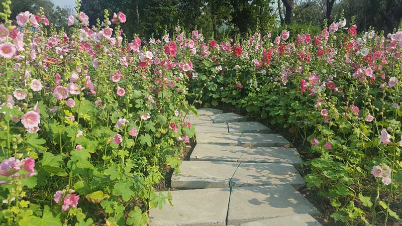 7. Hollyhocks (Alcea rosea)